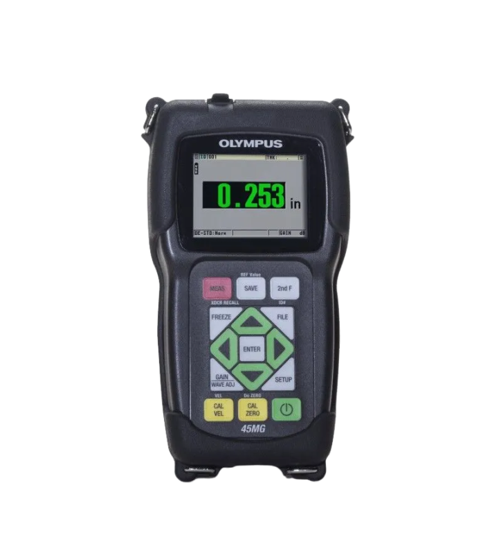 O Olympus 45MG é um medidor de espessura ultrassônico portátil, ideal para medir a espessura de camadas em uma variedade de materiais. Com alta precisão e facilidade de uso, ele é amplamente utilizado em inspeções para garantir a qualidade de revestimentos